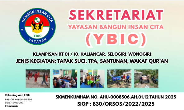 Yayasan Bangun Insan Cita (YBIC) hadir sebagai lembaga sosial yang berkomitmen mendorong terwujudnya masyarakat yang sejahtera, mandiri, dan berdaya. Melalui pendekatan pemberdayaan, pendidikan, sosial-keagamaan, dan kemanusiaan, YBIC berupaya menjadi mitra masyarakat dalam meningkatkan kualitas hidup secara berkelanjutan.